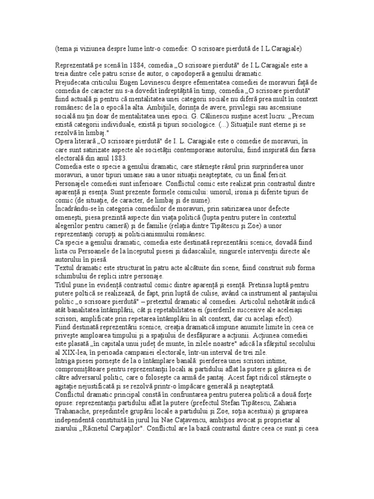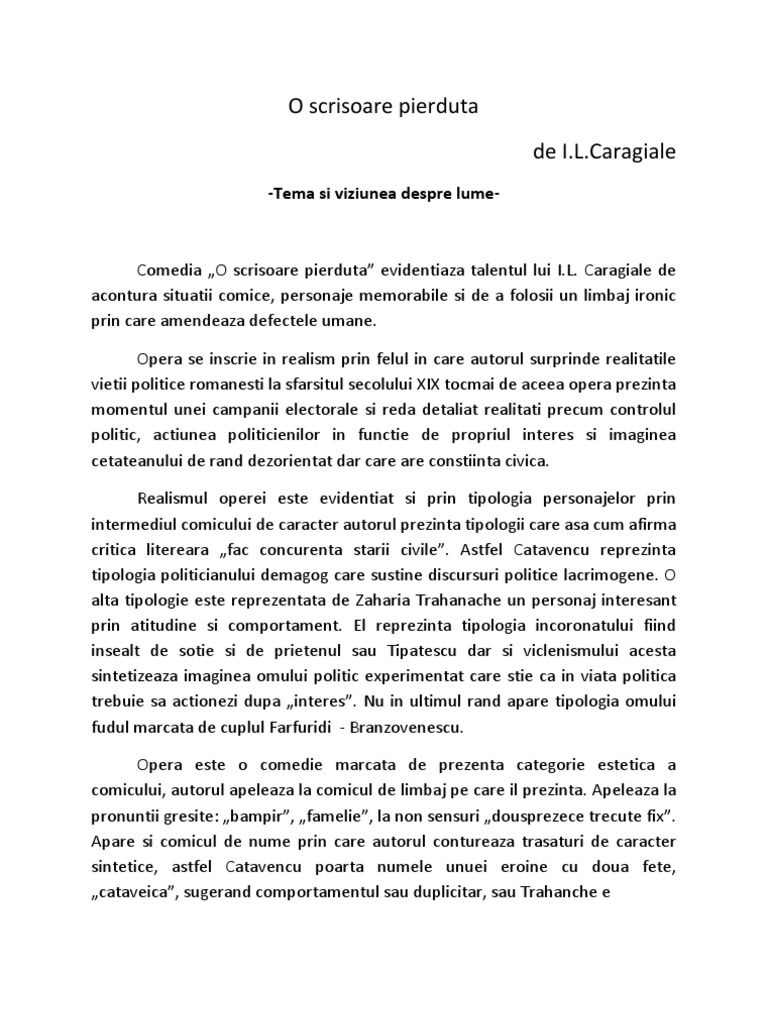 Viziunea despre lume o scrisoare pierduta. Unul care arată o. Opera literară o scrisoare pierdută este o comedie de moravuri aparţinând realismului clasic scrisă de i l caragiale moliere al nostru al. Tema și viziunea despre lume în comedia o scrisoare pierdută de ion luca caragiale tema și viziunea despre lume în romanul enigma otiliei de george călinescu alte opere regăsite în programa de bac pentru care avem rezolvat eseul care conține tema și viziunea despre lume găsești aici. O scrisoare pierduta pdf sgurcnj sco.