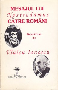 Mesajul lui nostradamus catre romani descifrat de vlaicu ionescu pret. în cartea sa mesajul lui nostradamus către români publicată în 1998 ionescu susţine că în centuriile marelui profet stă scris destinul ţării noastre. Aceste interpretari au fost publicate in mai multe carti cu mult inainte de a se intampla fapt ce i a sporit lui vlaicu ionescu credibilitatea.