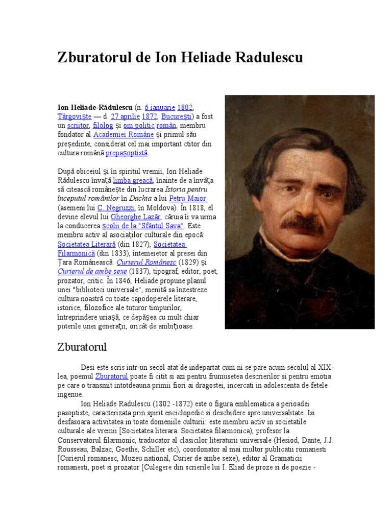 9 din 4 februarie 1844 este o capodopera a genului. înfiinţează şcoli predă matematică gramatică şi retorică editează ziare este autorul unor serii de studii şi articole despre limbă gramatica românească 1828 traduce din moliere voltaire victor hugo şi alţii. Ion heliade rădulescu zburătorul. Zburătorul de ion heliade rădulescu.