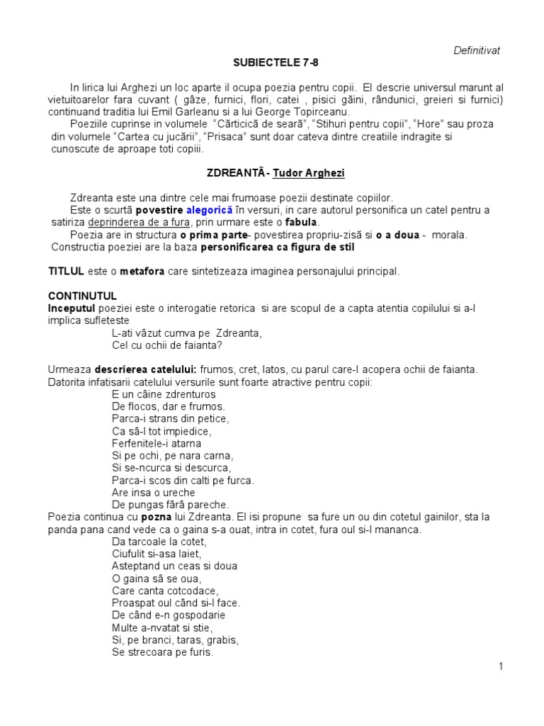 Zdreanta de tudor arghezi comentariu. Zdreanţă cel cu coteţ memorial la mărţişor. Tema acestei scrieri este arta poetica privita printr o perspectiva ludica diferita de cea a predecesorilor sai. Cele mai cunoscute poezii ale sale sunt cele in care descrie universul micilor vietuitoare gâze furnici flori catei pisici găini rândunici greieri si furnici. Puteti gasi foarte multe referate accesand categoriile din partea dreapta despre zdreanta de tudor arhezi comentariu uita te mai jos si o sa gasesti cele mai relevante rezultate pentru cautarea zdreanta de tudor arhezi comentariu.