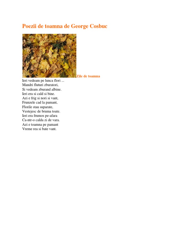 Zile de toamna george cosbuc. 0 stele 0 review uri. Zile de toamnă de george coșbuc. 21 mai 2018 11 31. Azi e frig și nori și vânt.